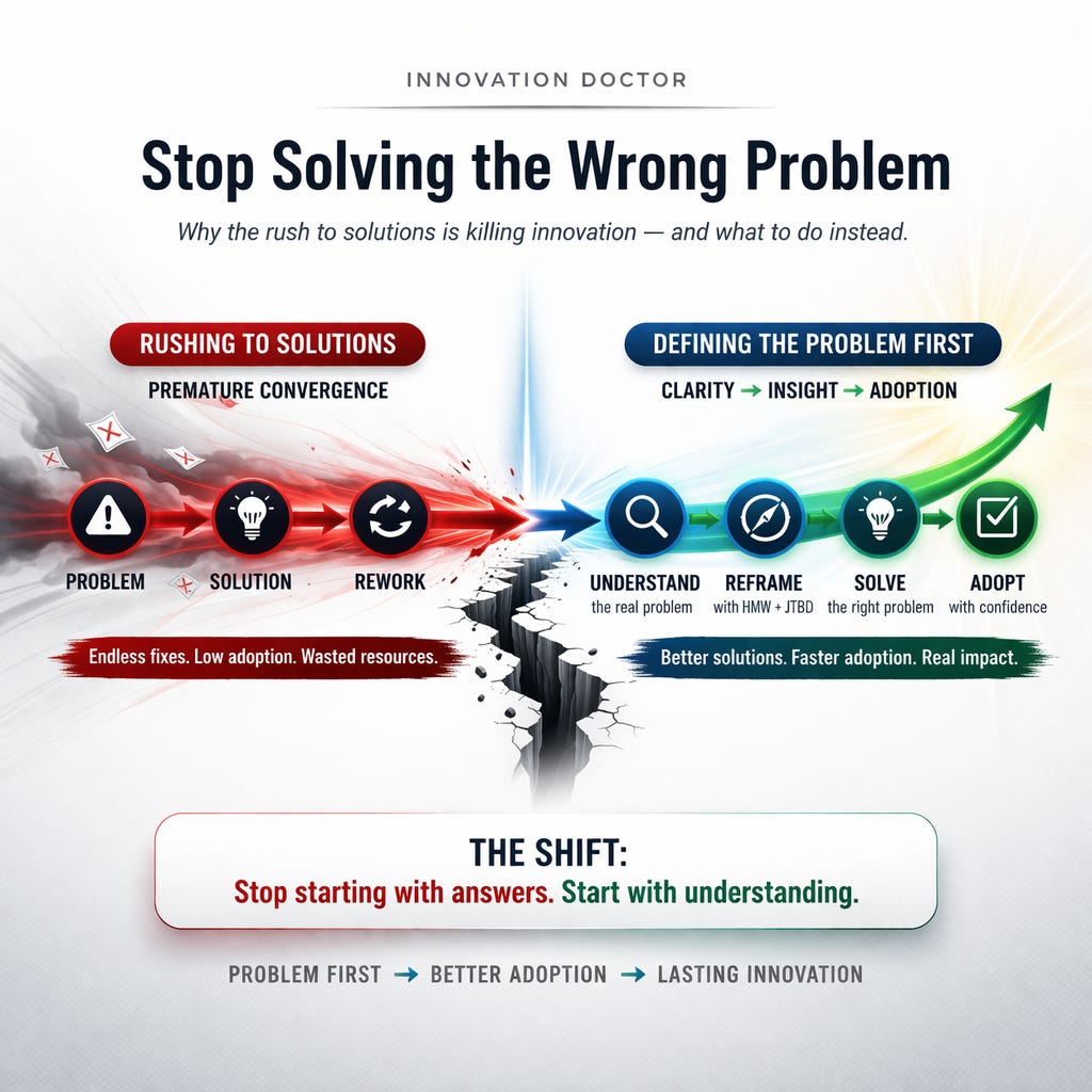 But this instinct — the rush to solutions — is one of the most consistent barriers to effective innovation.